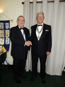 President Dennis Fretwell and Rotarian Ron Young presenting the cheque to Colin Lloyd