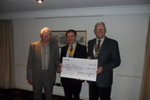 At our Club Meeting of the 13th November Colin Lloyd a Trustee and Treasurer of the Rotary Charity Aquabox was presented with a cheque for £565.00 being the proceeds from the recently held evening at Riddings Community Centre. When 100 people were entertained to an evening of Sea Shanty Songs and tales of the sea by the Stormy Weather Boys.